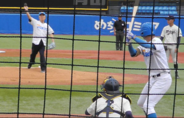 森山健一さん(61回)から,岡村甫さんが東京六大学野球のレジェンドとして,今日11時からの東大-明治戦で始球式をされるとメールがあったので,神宮球場に行って動画を撮って,Youtubeにアップしました.